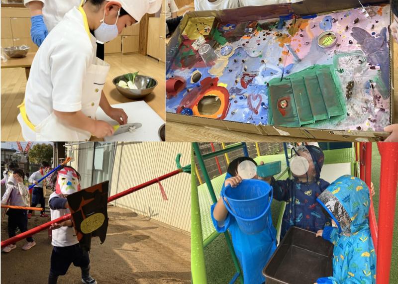 かにがさか保育園では、3.4.5歳児の異年齢合同クラスを取り入れており、年齢の垣根なく関わり、思いやりや自尊心を育みながら遊んでいます♪